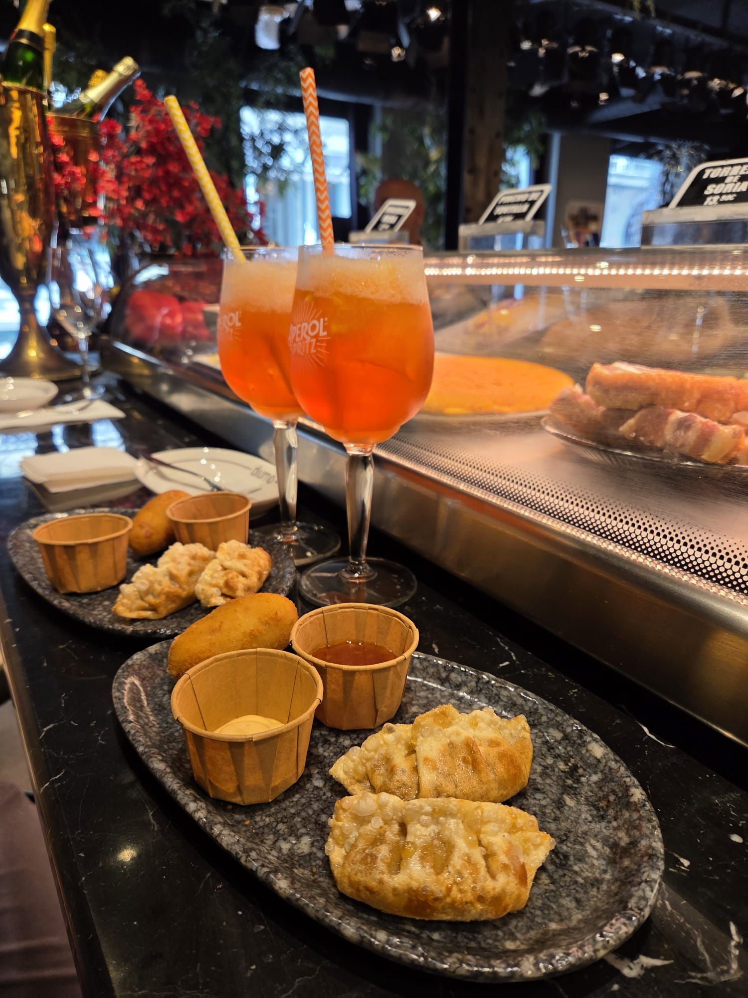 Y el hecho de que Diurno lo haya adaptado — los platos de siempre adecuados al formato de barra— significa que no sacrifican calidad: mantienen los sabores, el producto, pero en un formato más flexible. Además destacan tapas tradicionales como: el torrezno de Soria, la Gilda de Donostiarra o fusiones tan innovadoras como: las mini arepitas crujientes de rabo de toro o los tacos de oreja de cerdo.