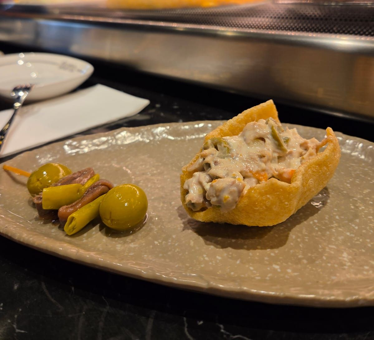 - Platos adaptadas al formato barra, ideales para picar y disfrutar con la bebida: Torreznos de Soria, gilda donostiarra, gyozas de pato, alcachofas confitadas a la plancha con una deliciosa crema, tacos de oreja de cerdo, mini arepitas crujientes de rabo de toro y sus sabrosas croquetas de jamón ibérico, entre otras especialidades.