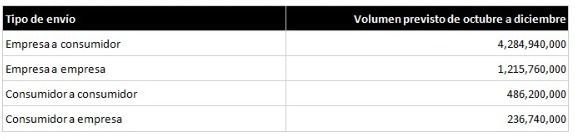 En toda Europa, entre octubre y diciembre de 2024 se realizarán 6.200 millones de envíos, un 9% más que en el mismo periodo de 2023, con 5.700 millones de paquetes.