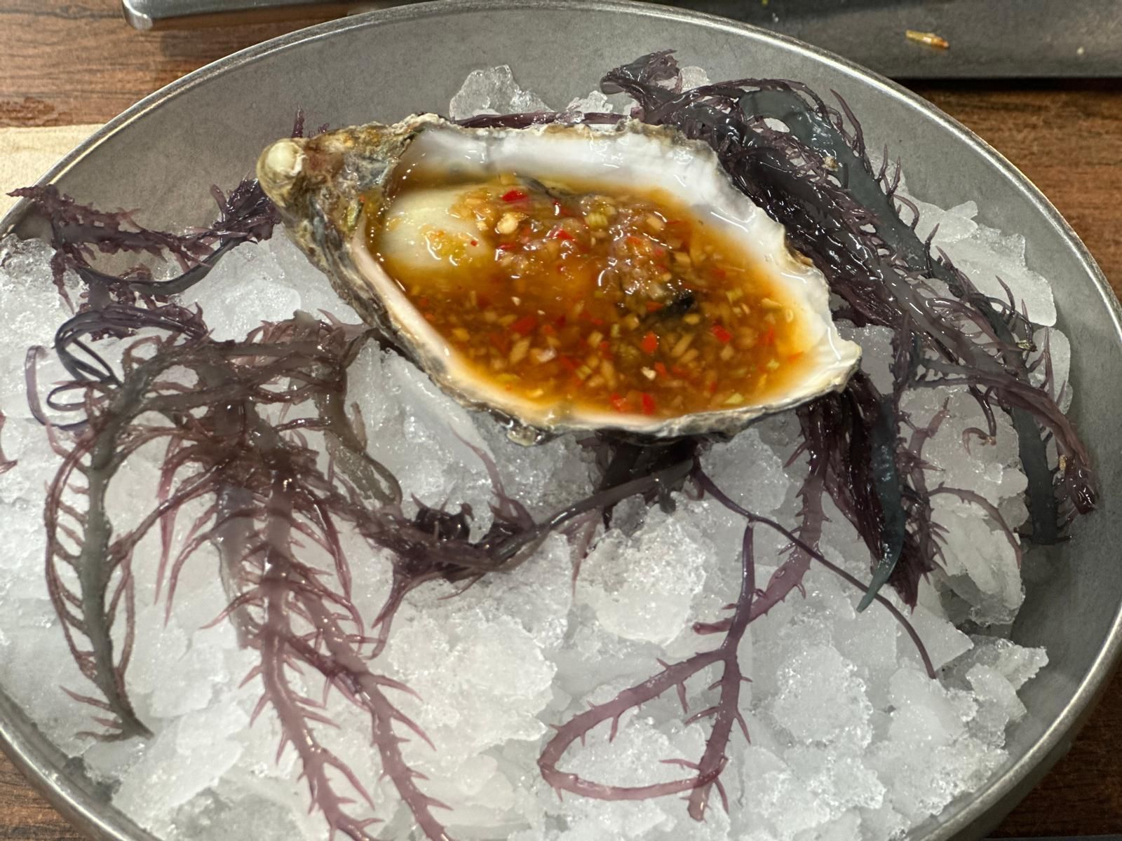 Mi experiencia comenzó con una de esas entradas que invitan a entregarse: la croqueta enchupetada, tan delicada como intensa, con una cremosidad que roza lo indecente y una presentación que despierta la curiosidad antes del primer bocado. Luego llegó la ostra con ponzu y yuzu, que es, sencillamente, una caricia salina y cítrica que se queda en la memoria.