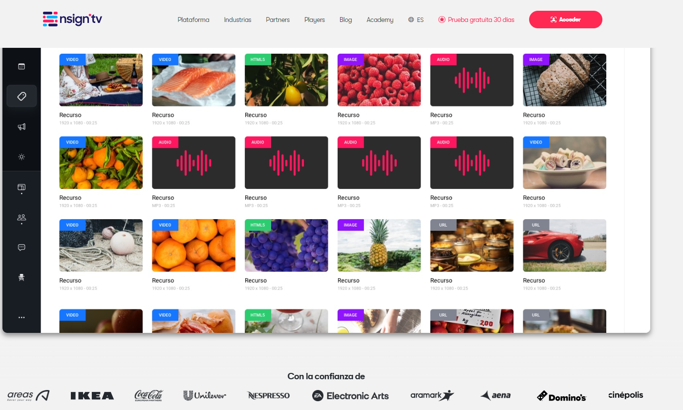 nsign.tv es una completa Plataforma de Comunicación que se comercializa en formato as a Service (SaaS) y, de manera muy amigable e intuitiva, permite a las marcas y a los retailers conectar e interactuar con sus audiencias en los espacios físicos. nsign.tv almacena, organiza, programa y reproduce contenidos digitales de forma medible, centralizada y sobre cualquier pantalla, integrándose con total flexibilidad a proyectos de digitalización escalables a través de AI, Big Data e IoT para crear experiencias diferenciales con clientes y empleados en cualquier espacio físico.
