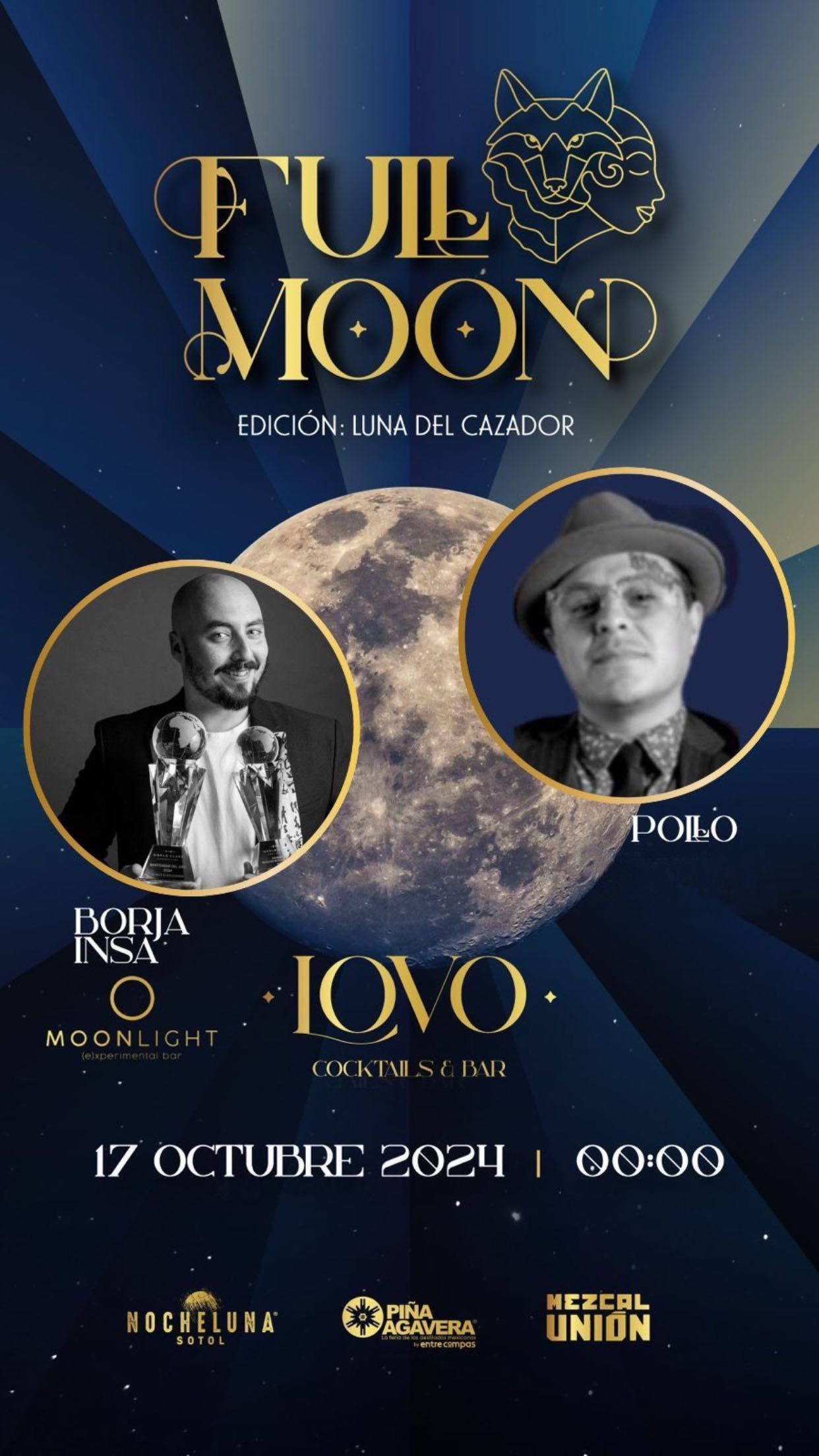 00:00 h – A medianoche, Lovo Bar acogerá la Full Moon edición Luna del Cazador, un evento en el que Borja Insa (Moonlight Experimental Bar) y Pollo, de Hanky-Panky speakeasy (México), ofrecerán una experiencia que mezcla arte, coctelería y misterio.